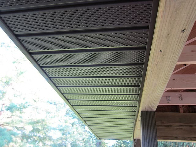 The soffit helps aerate this part of the house by allowing proper air circulation in the attic. During the winter, when the temperature inside the building is high, it will help avoid an unwanted accumulation of humidity, whilst also reducing the chance of icicles forming under the roof. In the summer, it will make your air conditioning system more efficient.